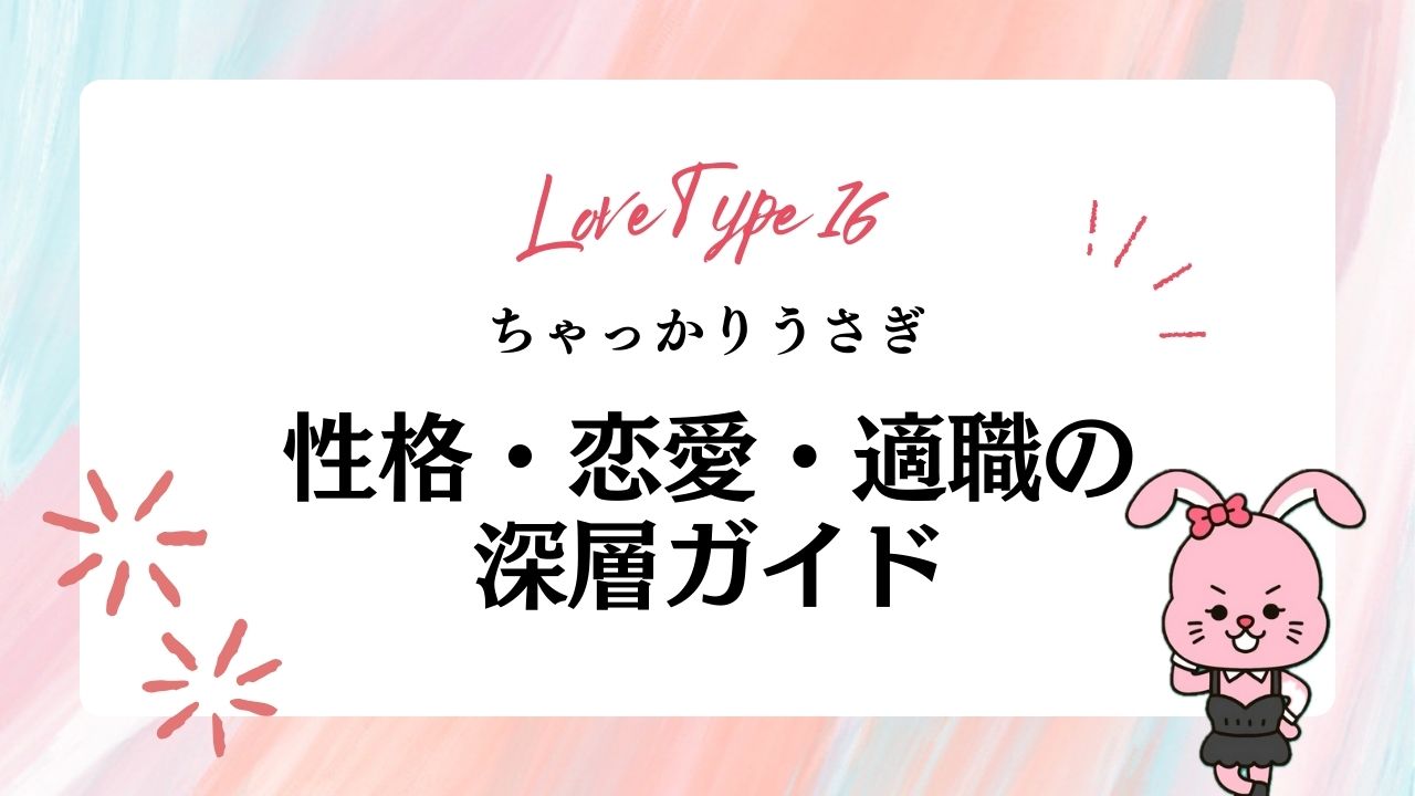 “ちゃっかり可愛いのに、なぜか得をする人”。そんな不思議な魅力を持つ ちゃっかりうさぎ(FCRE)。本記事では、ラブタイプ診断の視点から、このタイプがどんな性格で、どんな恋をし、どんな未来を選びやすいのかを深掘りします。恋愛・仕事・自己理解まで丸ごとガイドにし、あなたがもっと愛されるヒントを届けます。