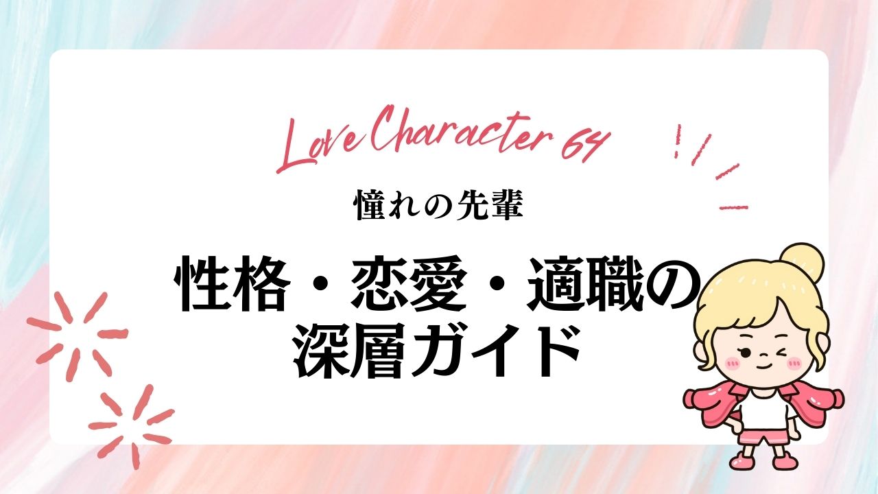 16タイプがそれぞれ強みを持つラブキャラ診断64の中で、憧れの先輩は「調和・安定・誠実さ」の象徴です。周囲の変化に動じず、感情のバランスを保ちながら状況を俯瞰します。